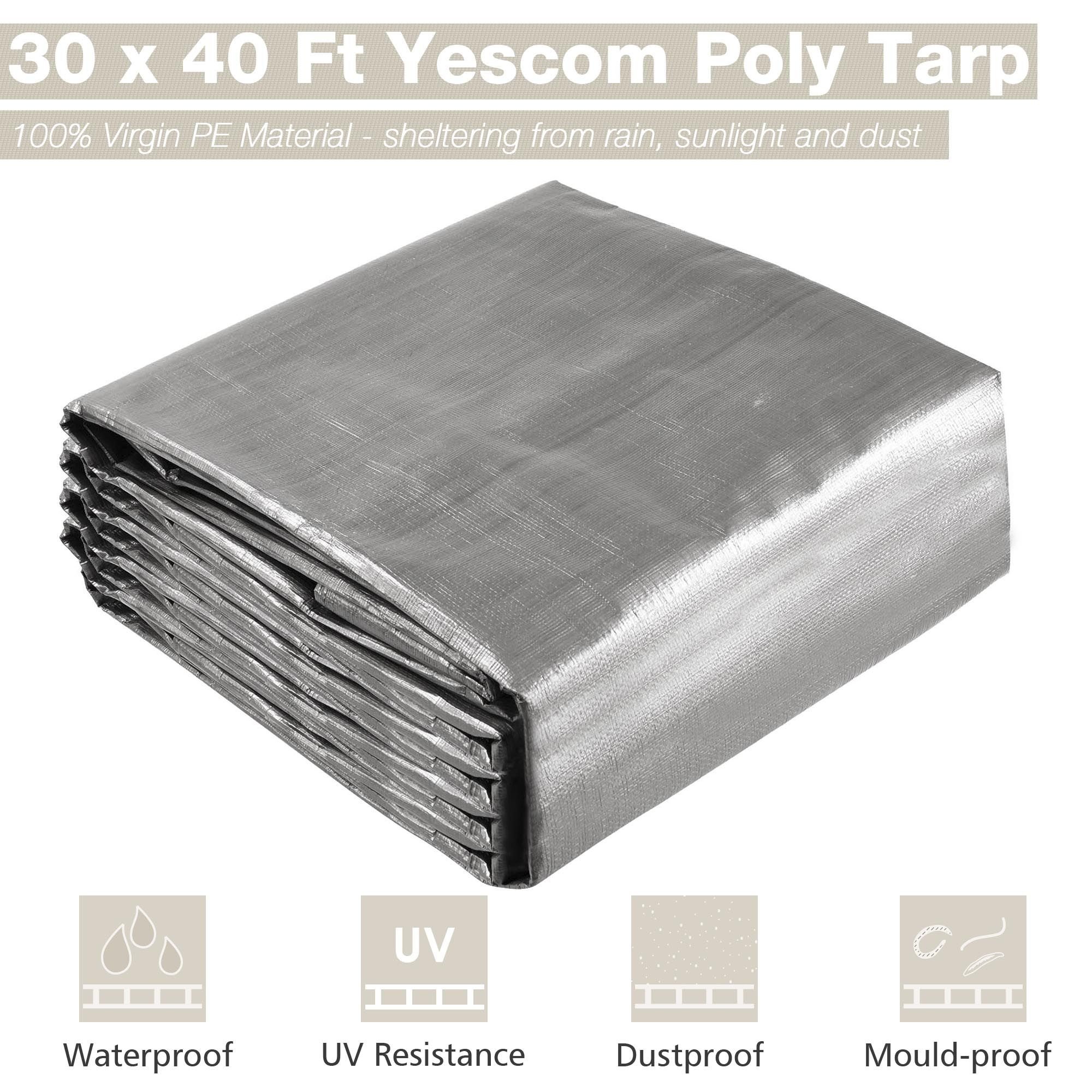 - Strong & Durable Shelter - 30 x 40 ft silver and black poly tarp forms a strong and durable shelter from sunlight; rain and dust; cooler underneath in the summer; Long lifetime up to 3 years; it features good ability of anti-aging for long-time use