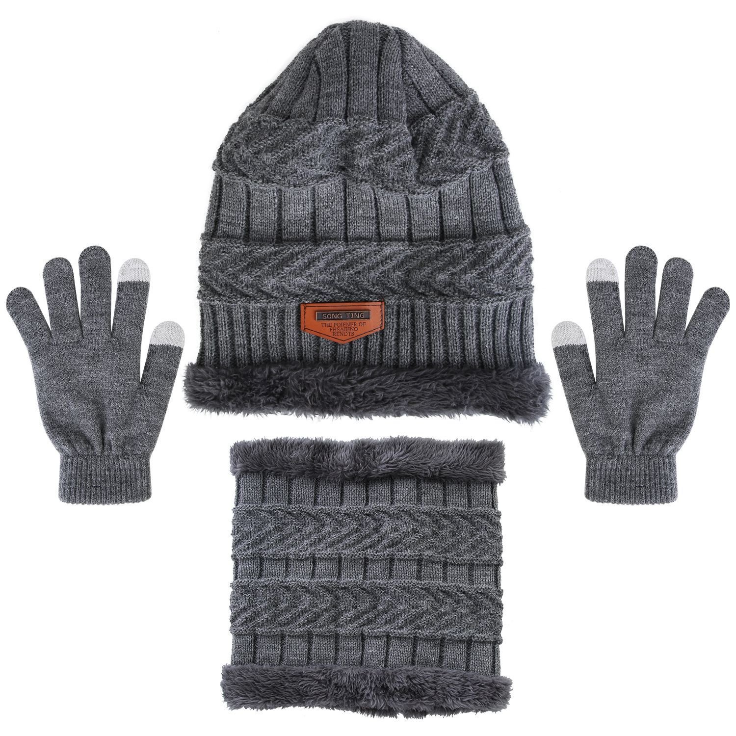 3-Pieces Winter Hat Gloves Scarf Set, Knit Warm Beanie Hat Neck Warmer Touch Screen Mittens for Women and Men, Great Christmas Gift