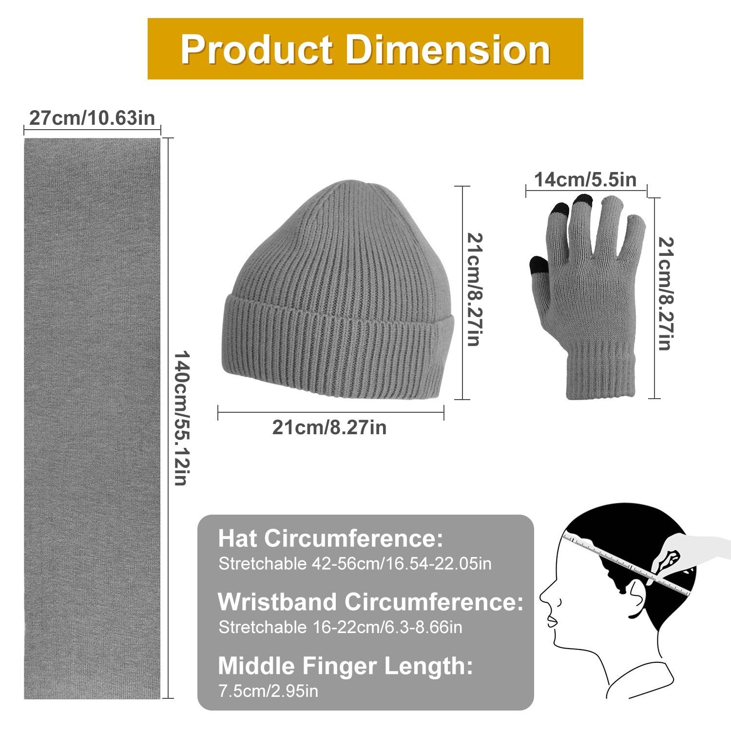 *3-In-1 Design To Keep Warm*:Our 3-in-1 beanie,gloves and scarf set can keep your head,ears,face,neck and hands warm,giving you lasting warmth and softness. You won't catch a cold easily in chilly winter cause the 3Pcs Winter Warm Gears are able to fully keep you warm and comfortable when the temperatures drop.