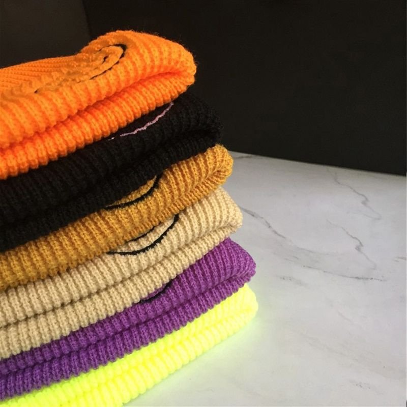 Home > Smiling Face Embroidery Baby Knitted Hat Autumn Winter Warm Infant Toddler Beanie Hat Outdoor Windproof Girls Boys Bonnet Cap
