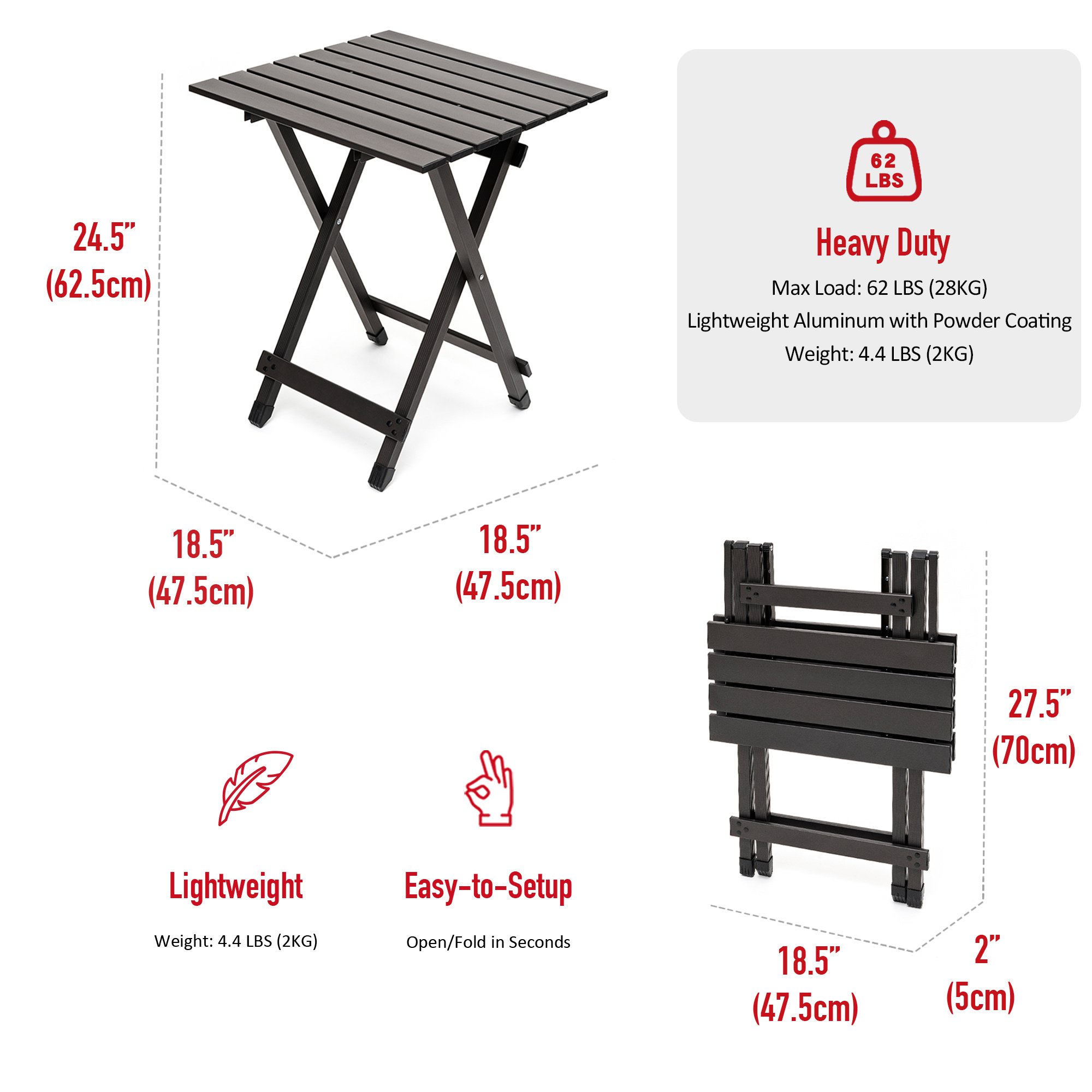 SUNNYFEEL Folding Camping Table - Lightweight Aluminum Portable Picnic Table, 18.5x18.5x24.5 Inch for Cooking, Beach, Hiking, Travel, Fishing, BBQ