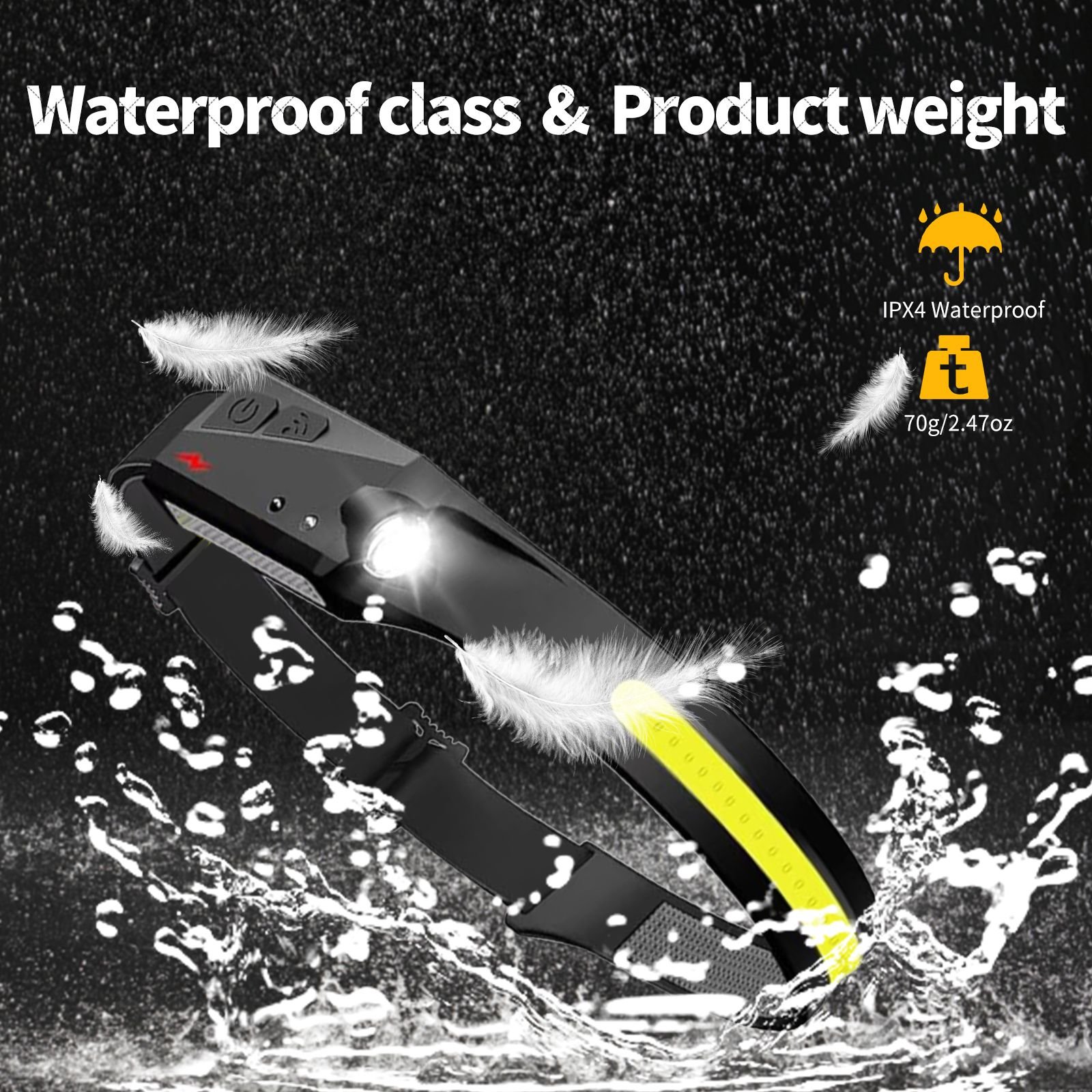 WATERPROOF & MULTIPURPOSE - The headlight is IPX4 waterproof, preventing water splashing from all angles. You don't need to worry if it rains or snows suddenly. It is ideal for outdoor lovers as camping gear. Whether you are camping, exploring, hiking, cycling, fishing, climbing, repairing and other outdoor or indoor activities, our headlamps are your good assistants.