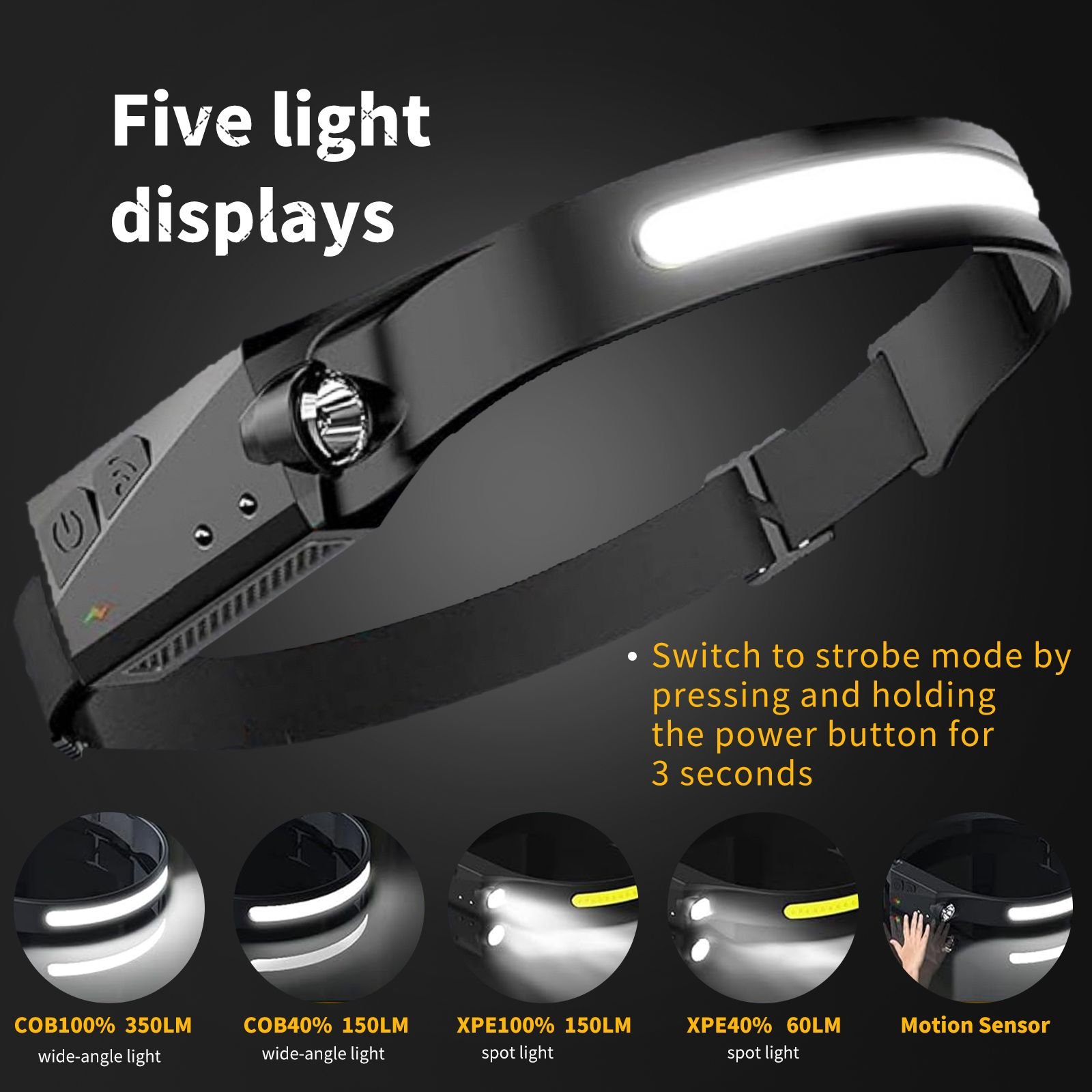 MOTION SENSOR MODE - LED Headlamp Camping Accessories is equipped with the latest intelligent sensors. Even if wearing gloves, as long as the distance from the device is within 10 cm, you can quickly switch the ON/OFF by waving your hand in motion mode.
